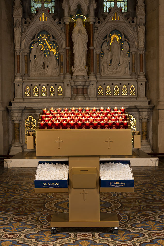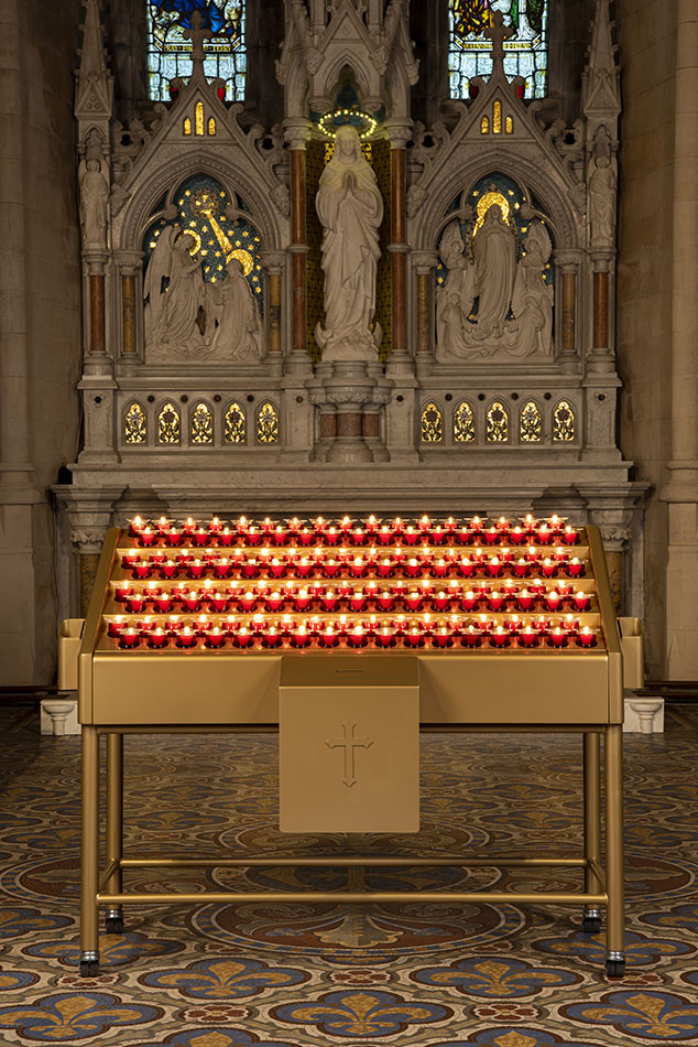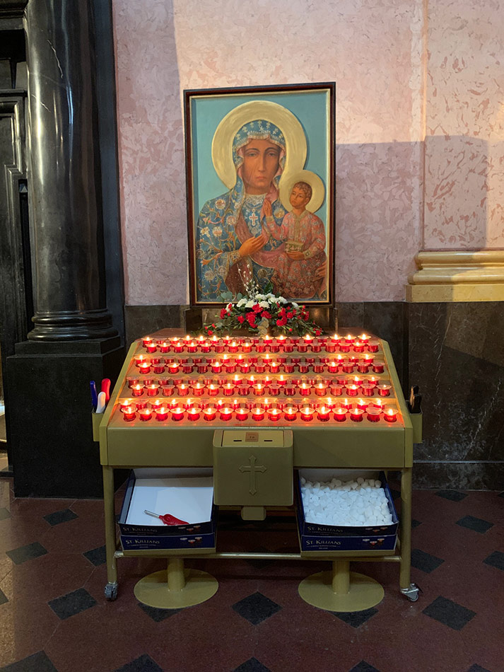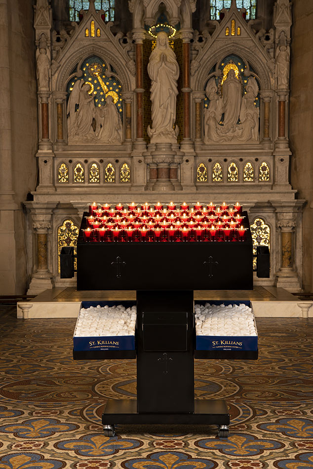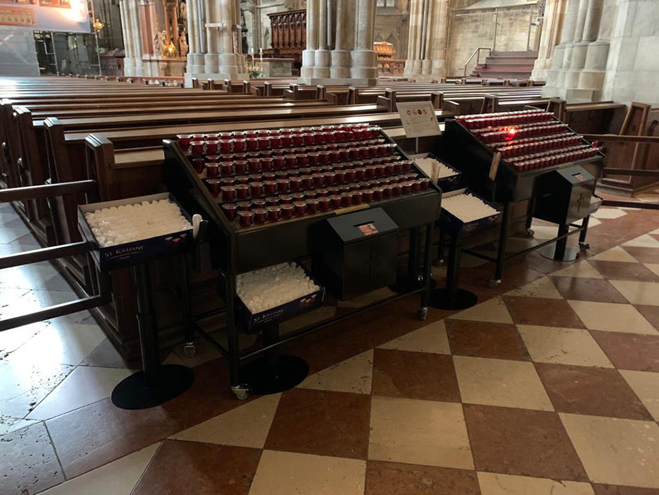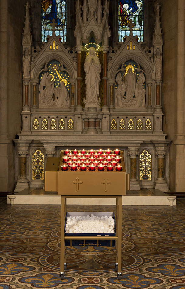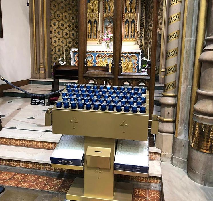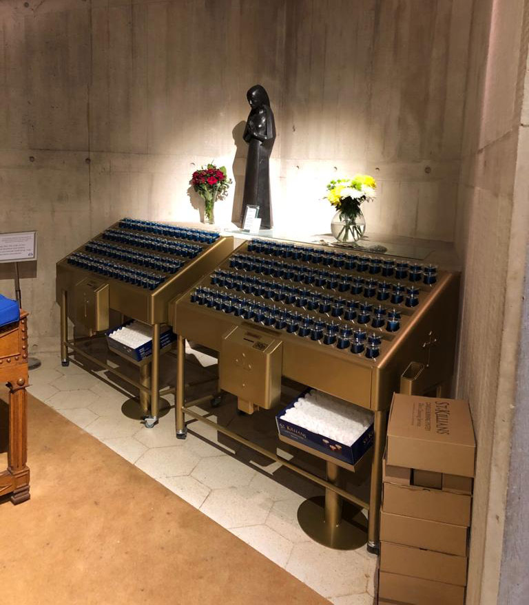 Svícny instalované ve svatyni Panny Marie, Královny Irska v Knocku