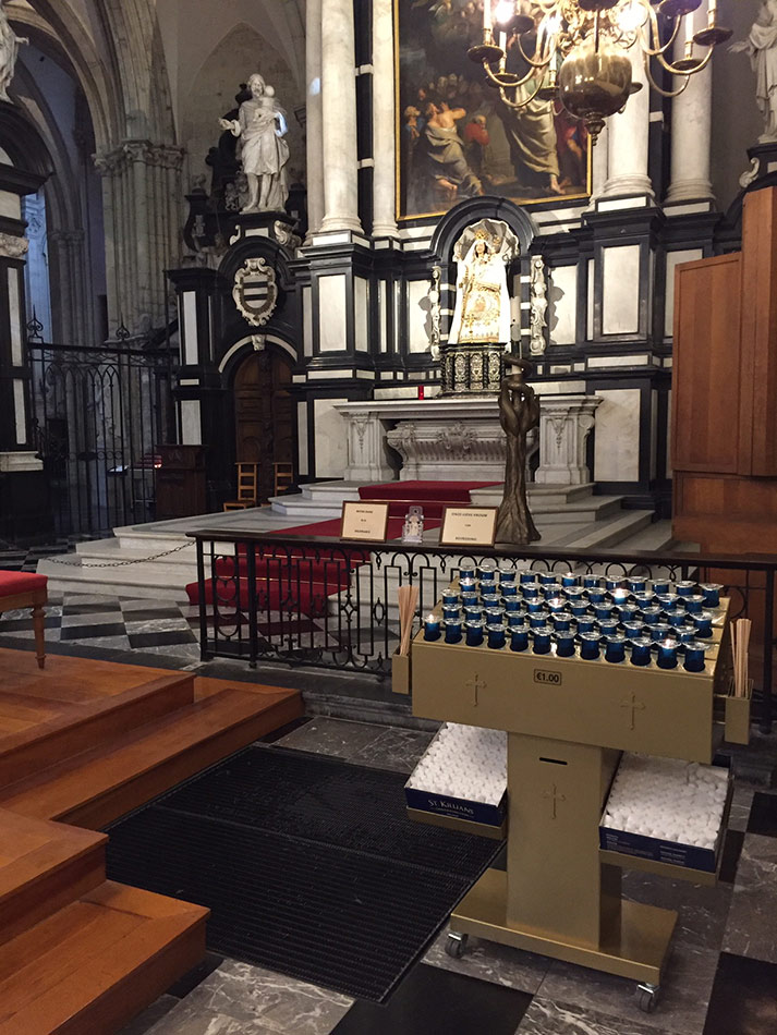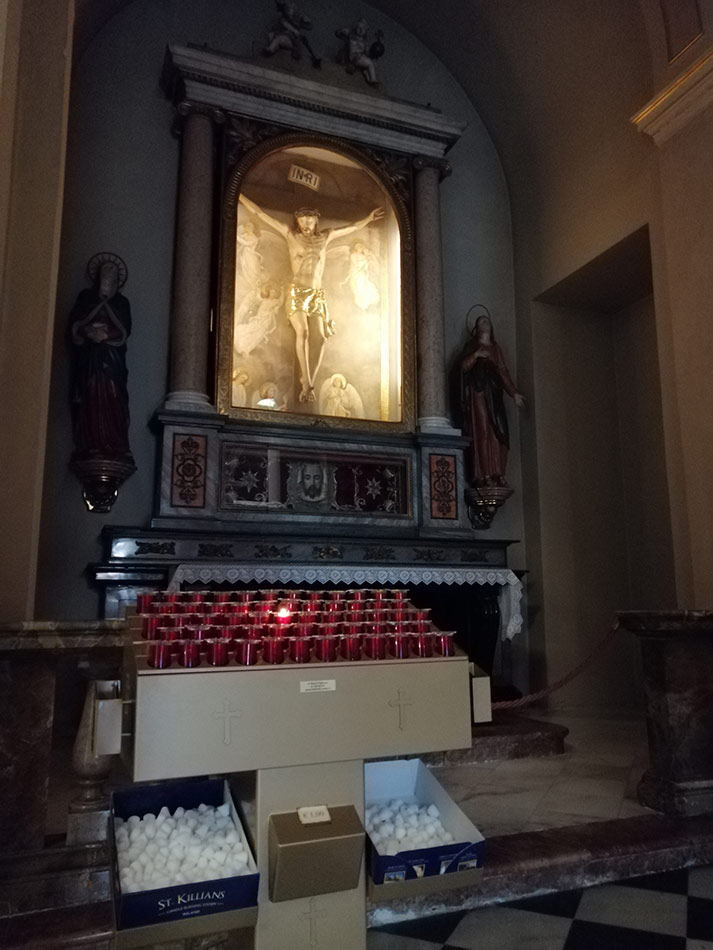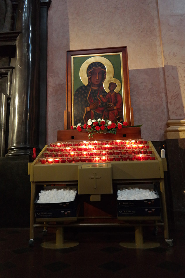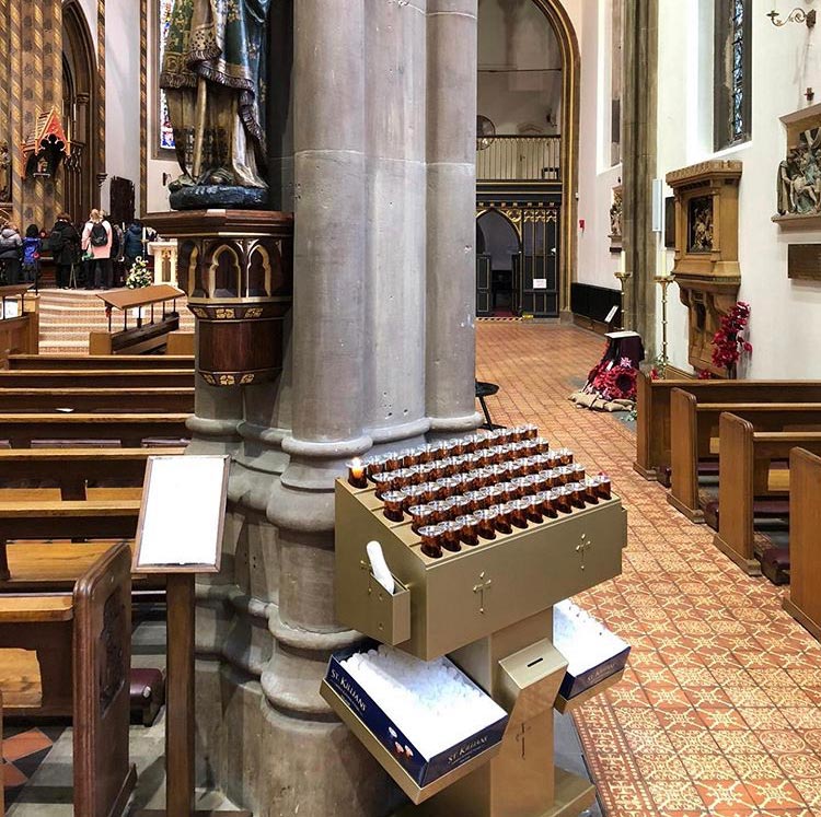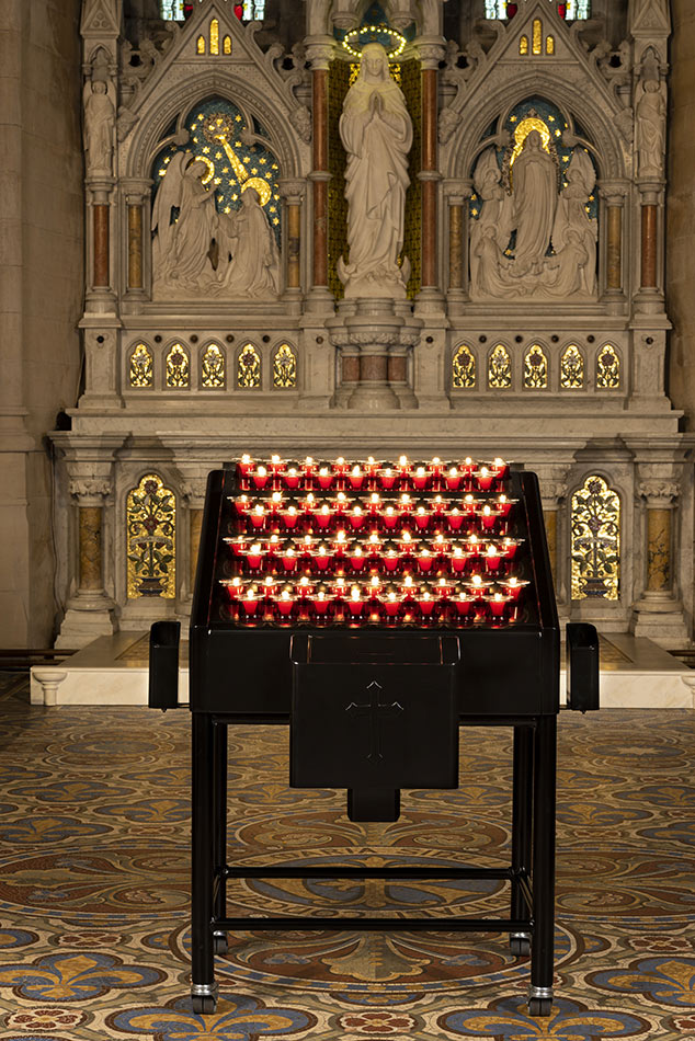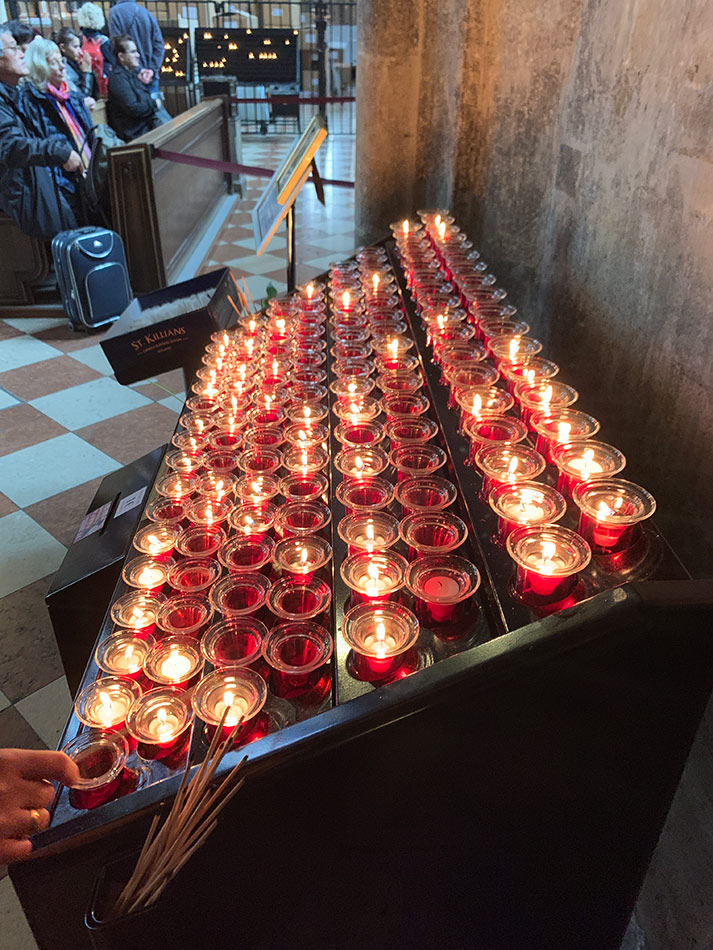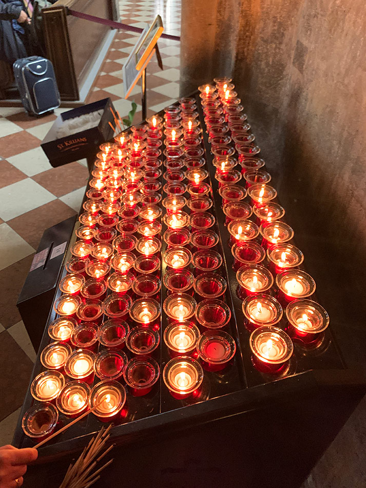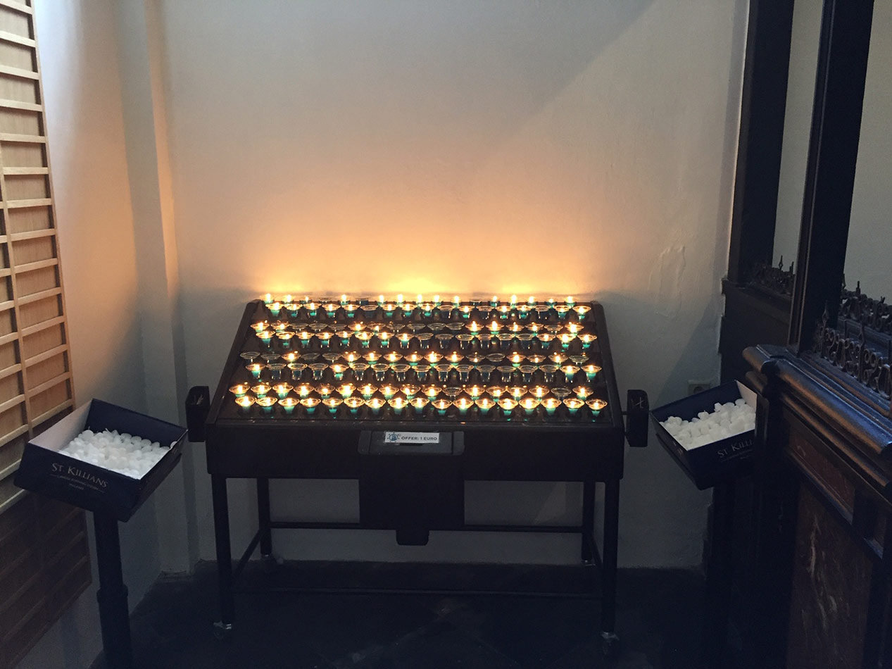 Svícny instalované ve svatyni Panny Marie, Královny Irska v Knocku