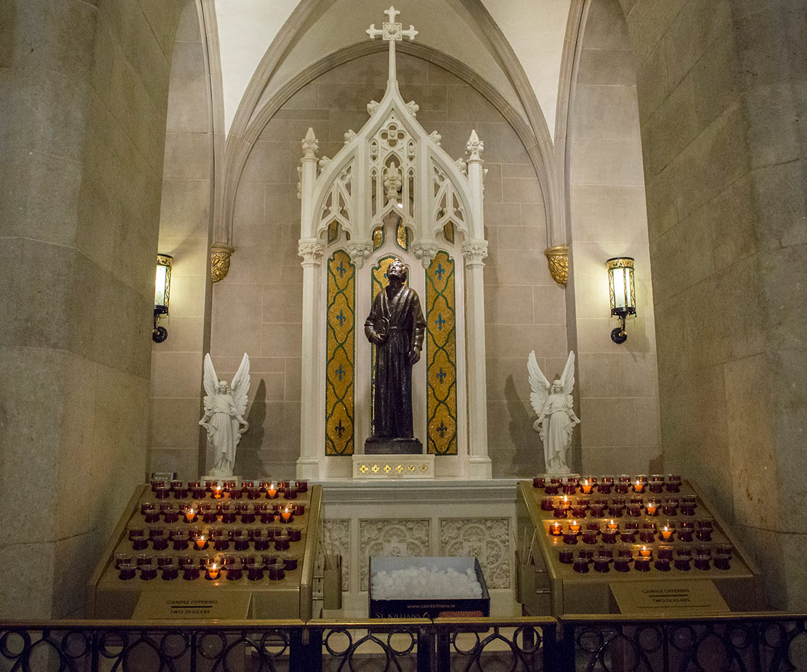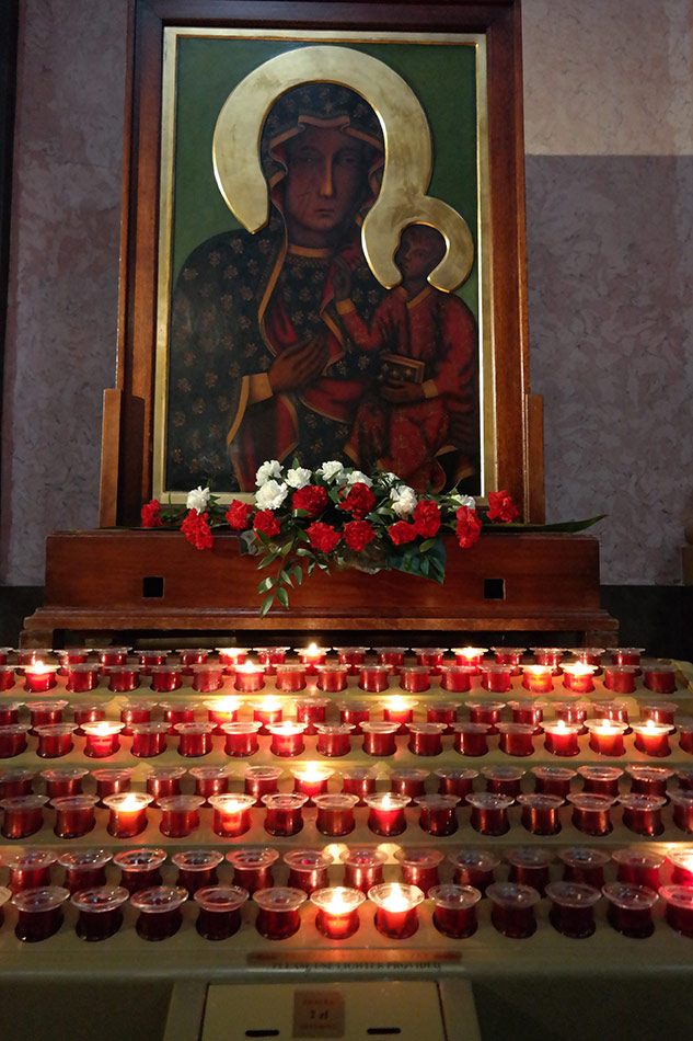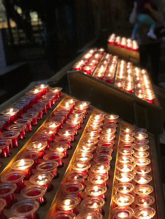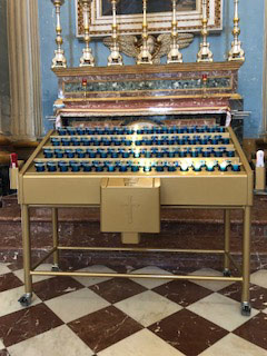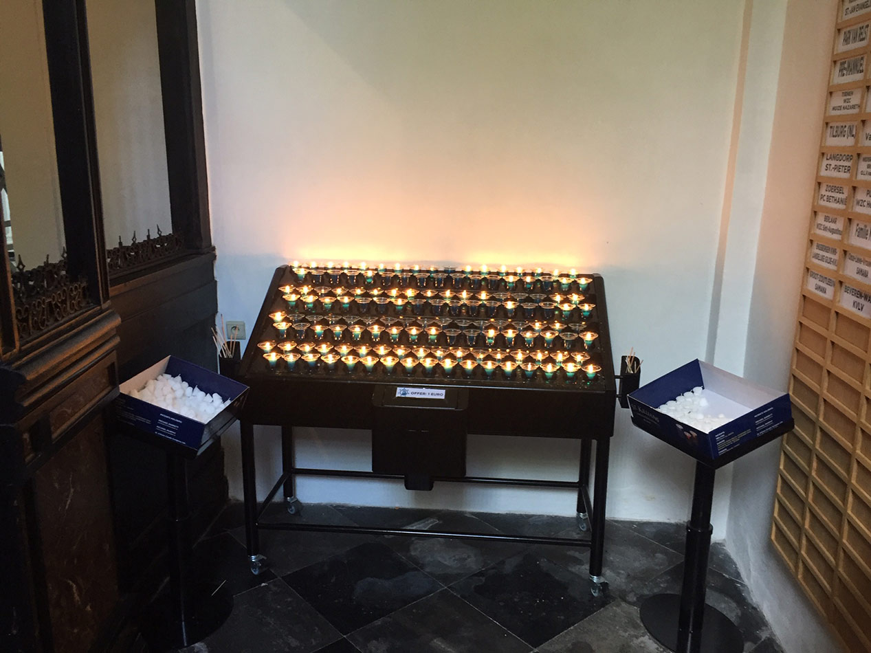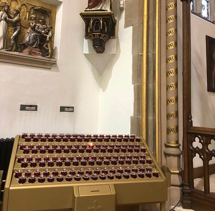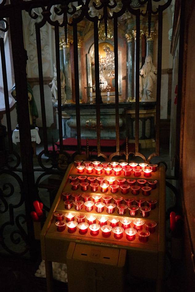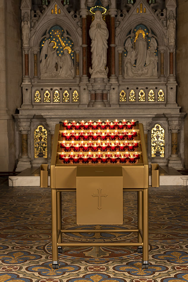 Svícny instalované ve svatyni Panny Marie, Královny Irska v Knocku
