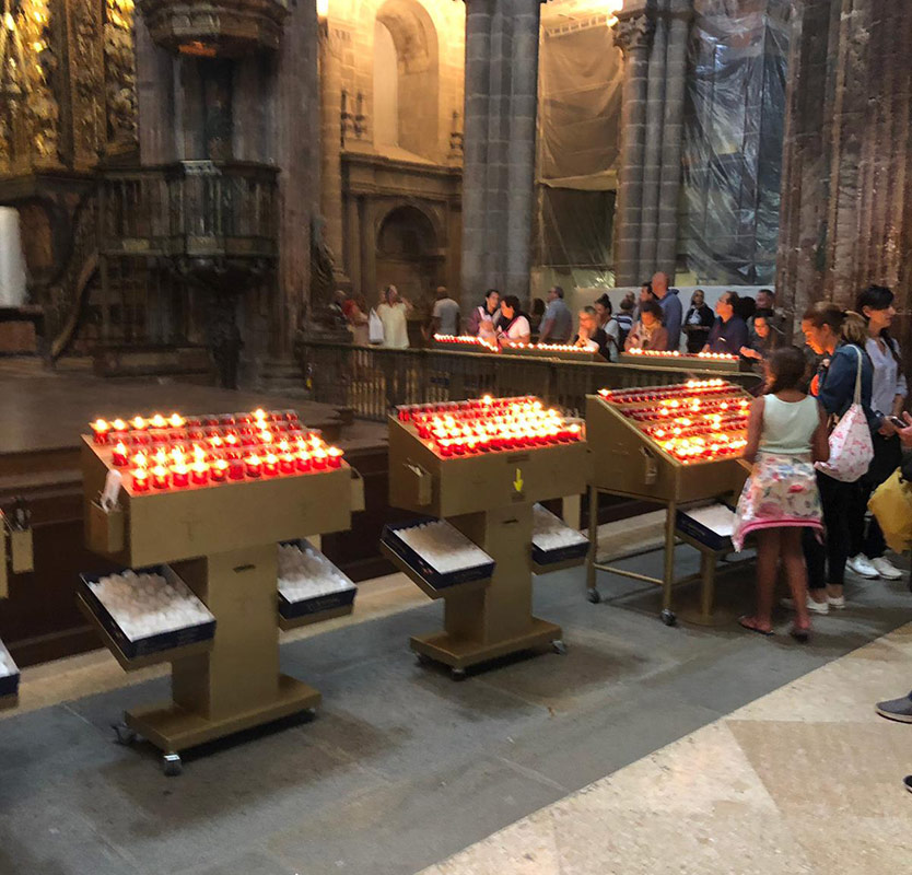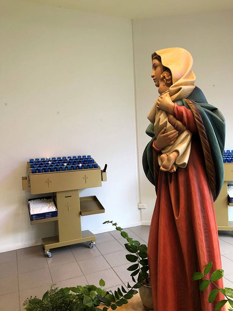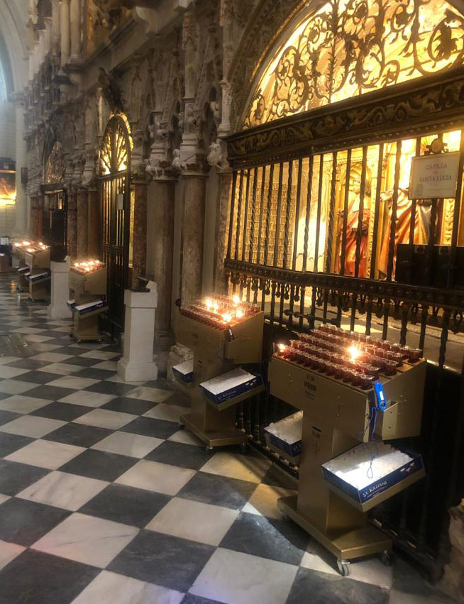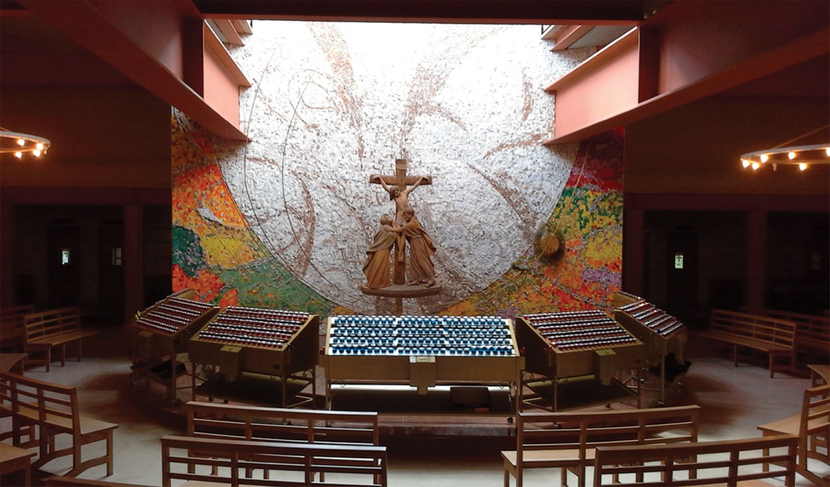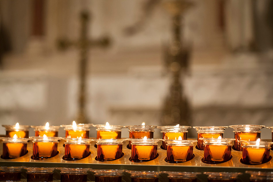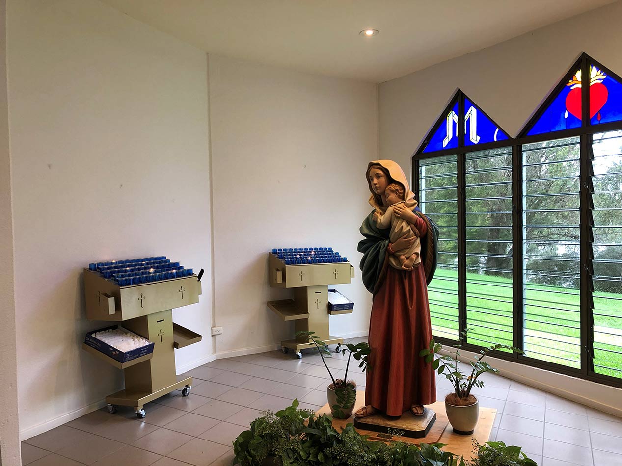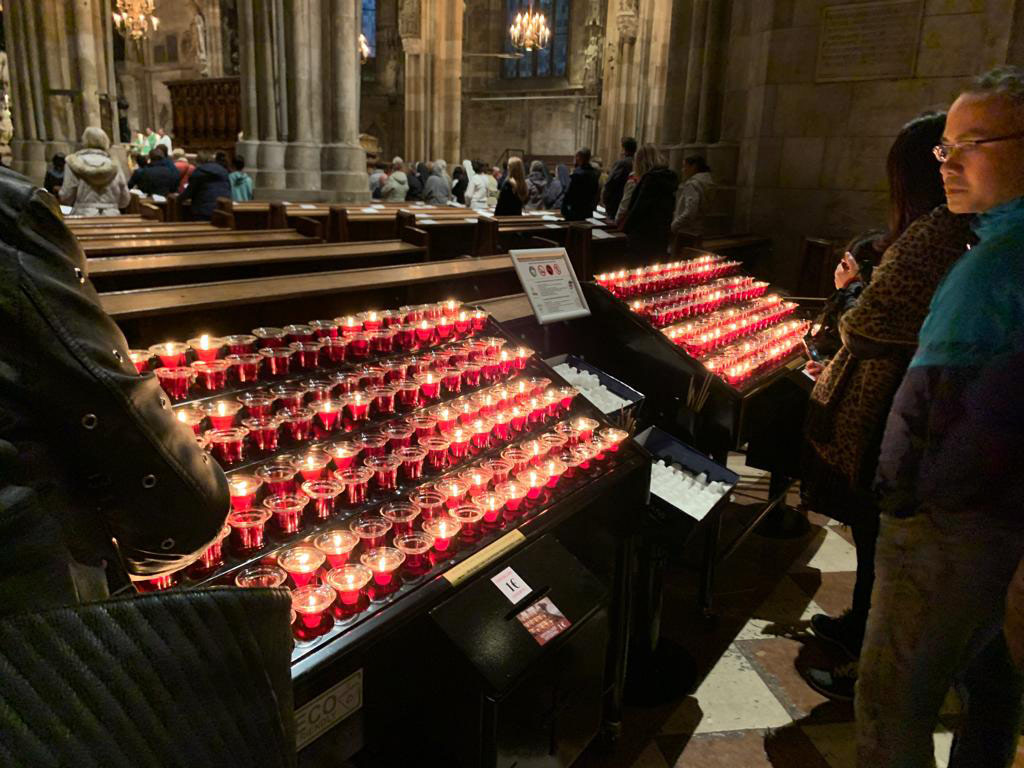 Svícny instalované ve svatyni Panny Marie, Královny Irska v Knocku