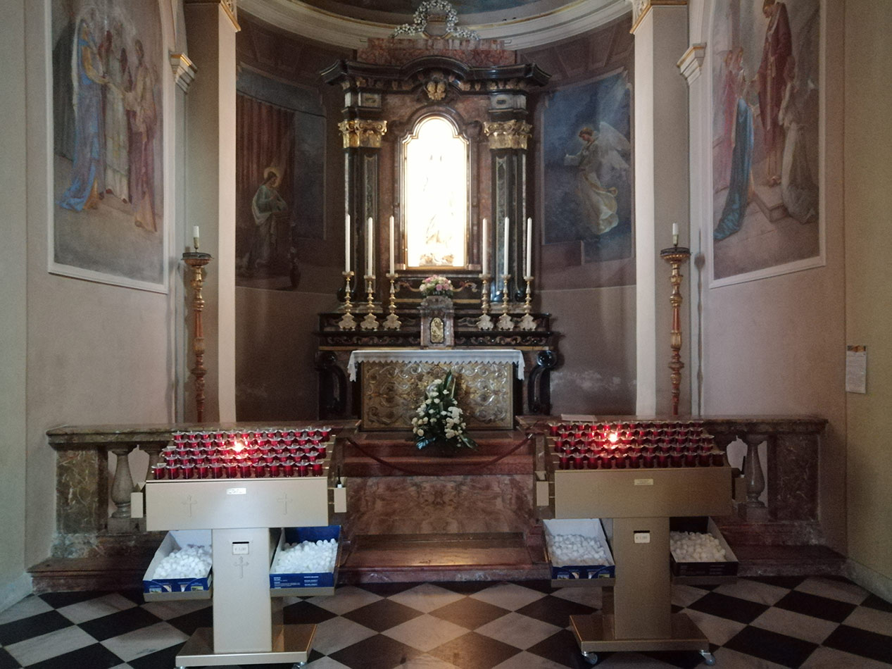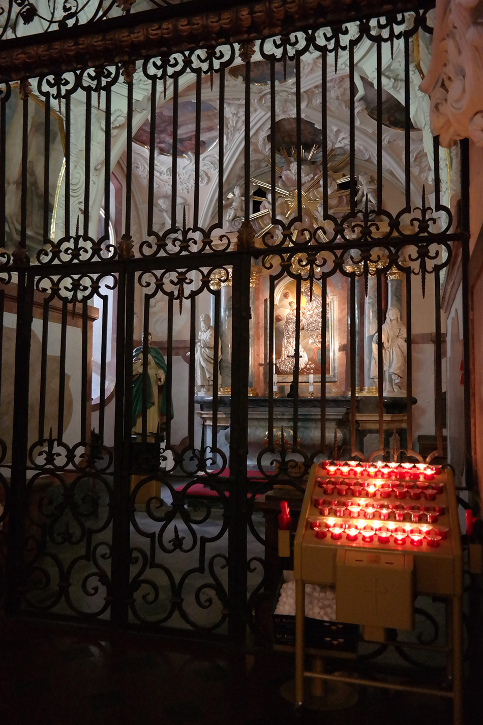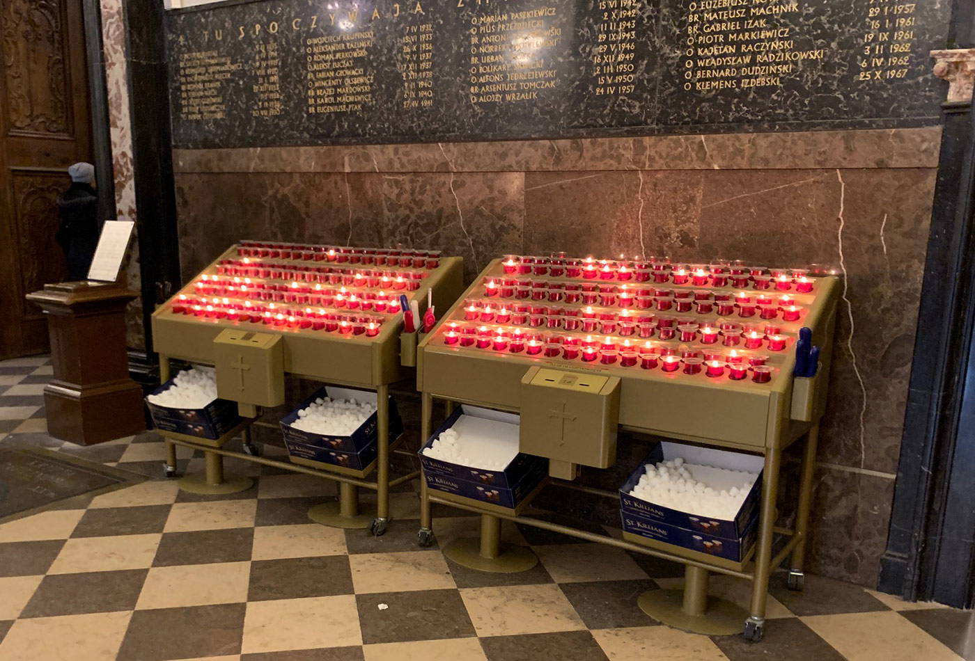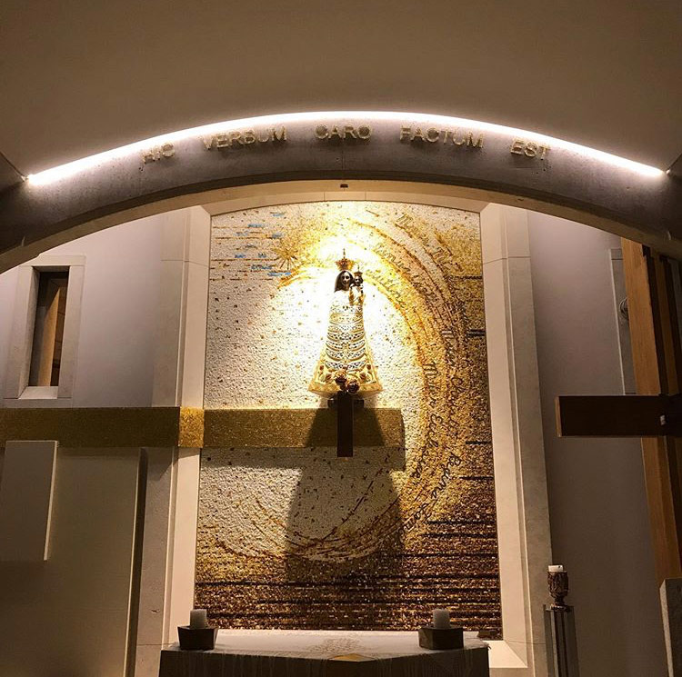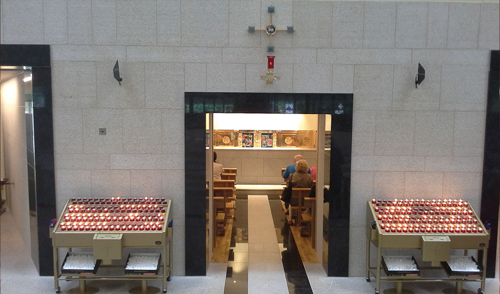 Svícny instalované ve svatyni Panny Marie, Královny Irska v Knocku