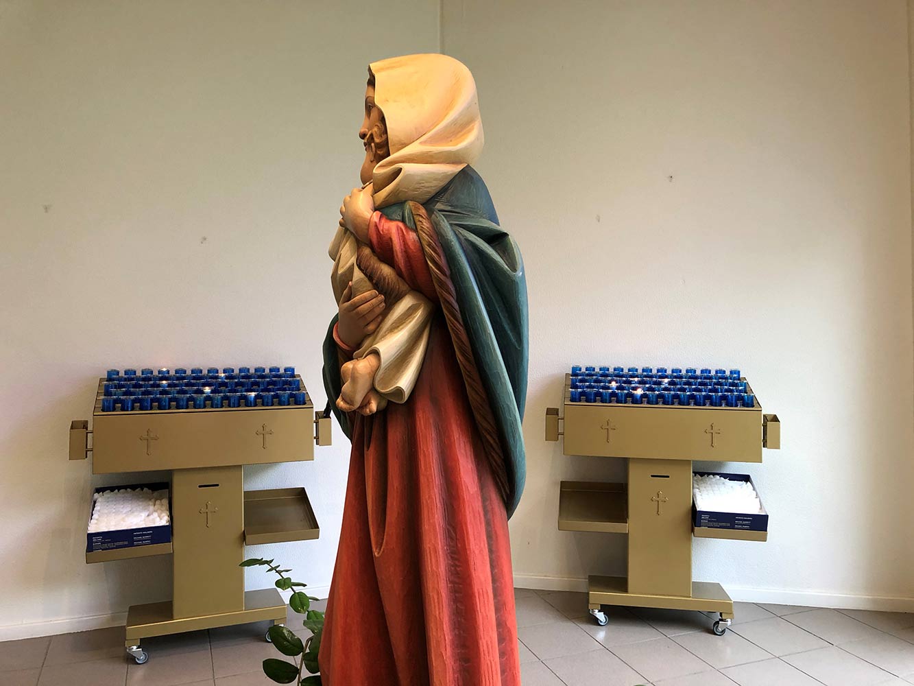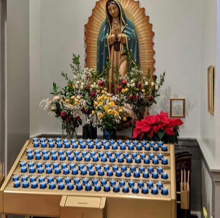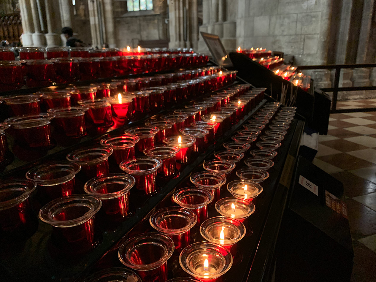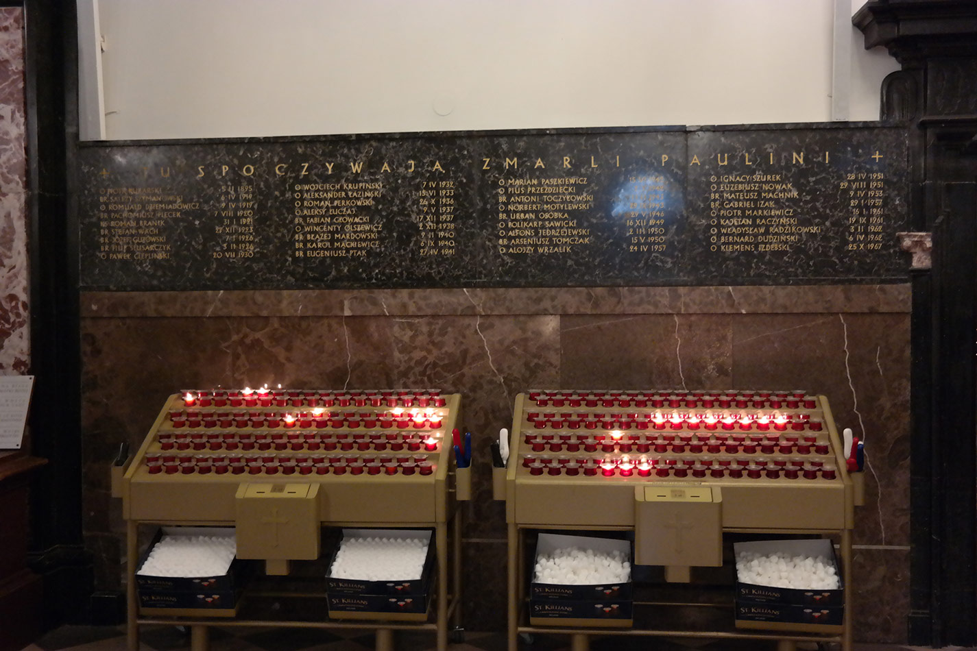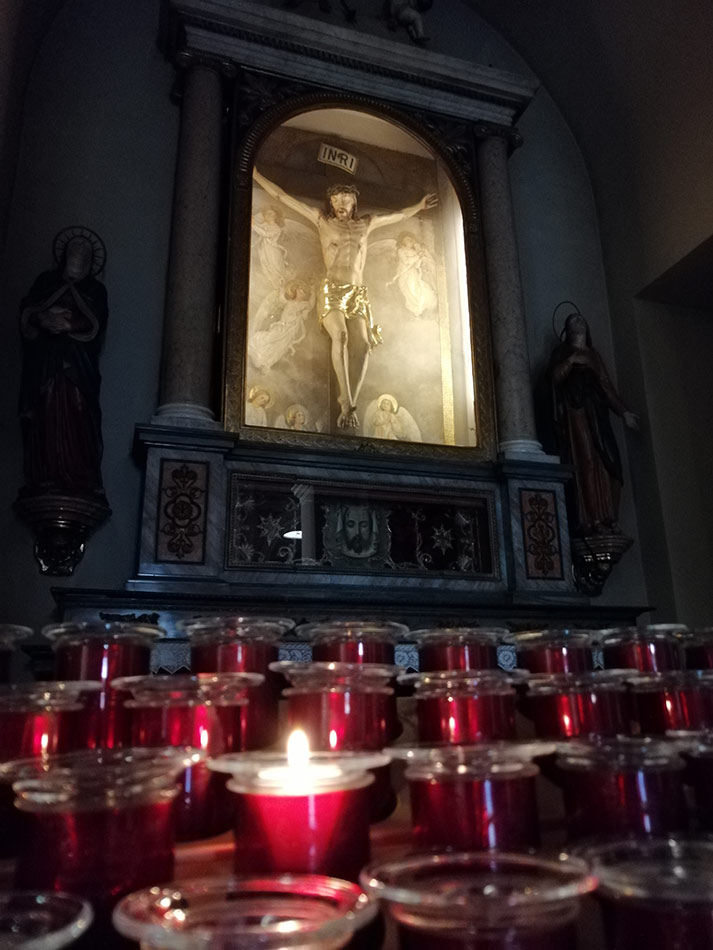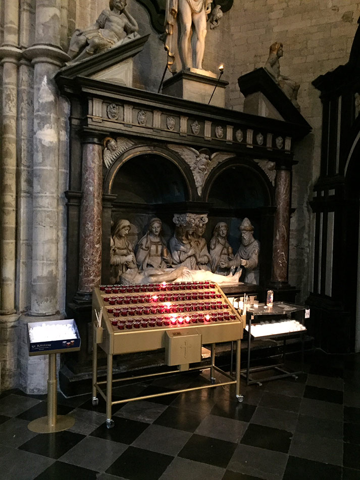 Svícny instalované ve svatyni Panny Marie, Královny Irska v Knocku