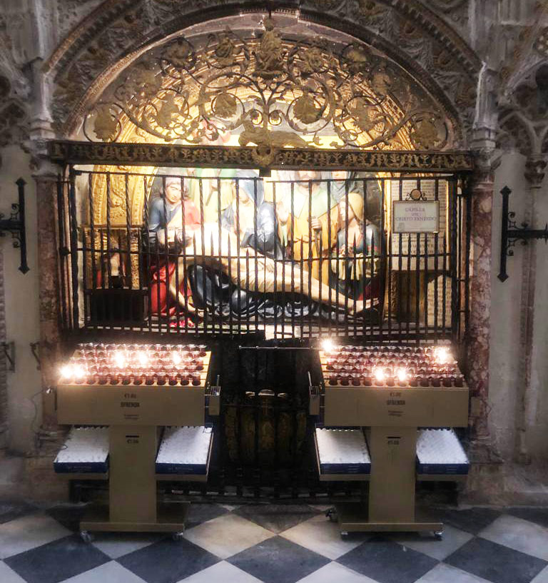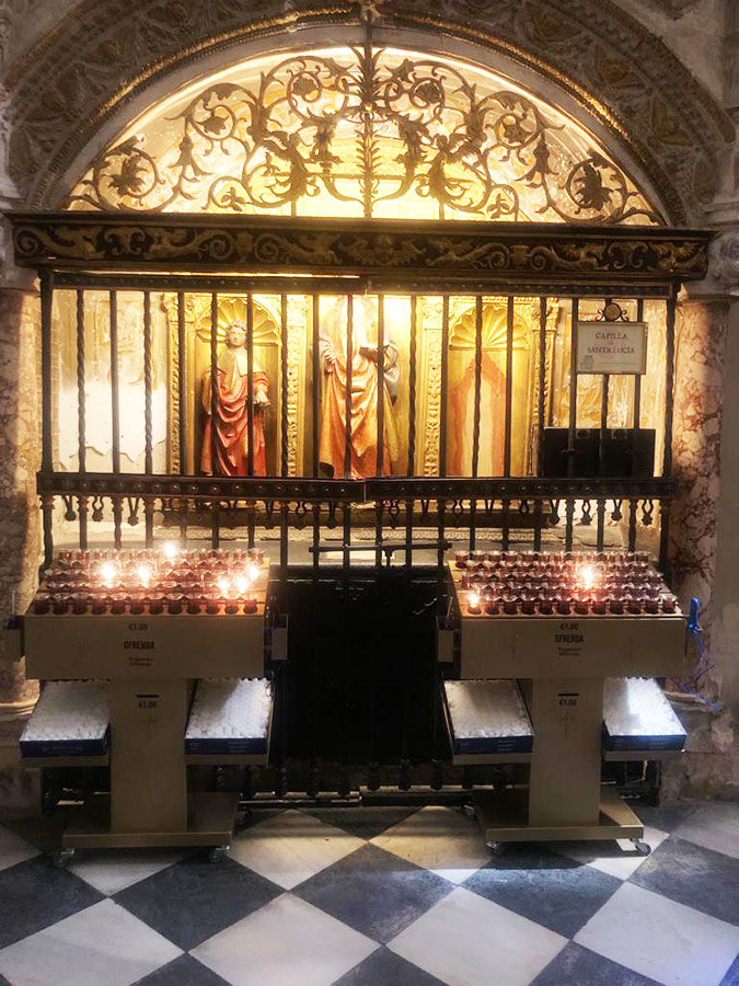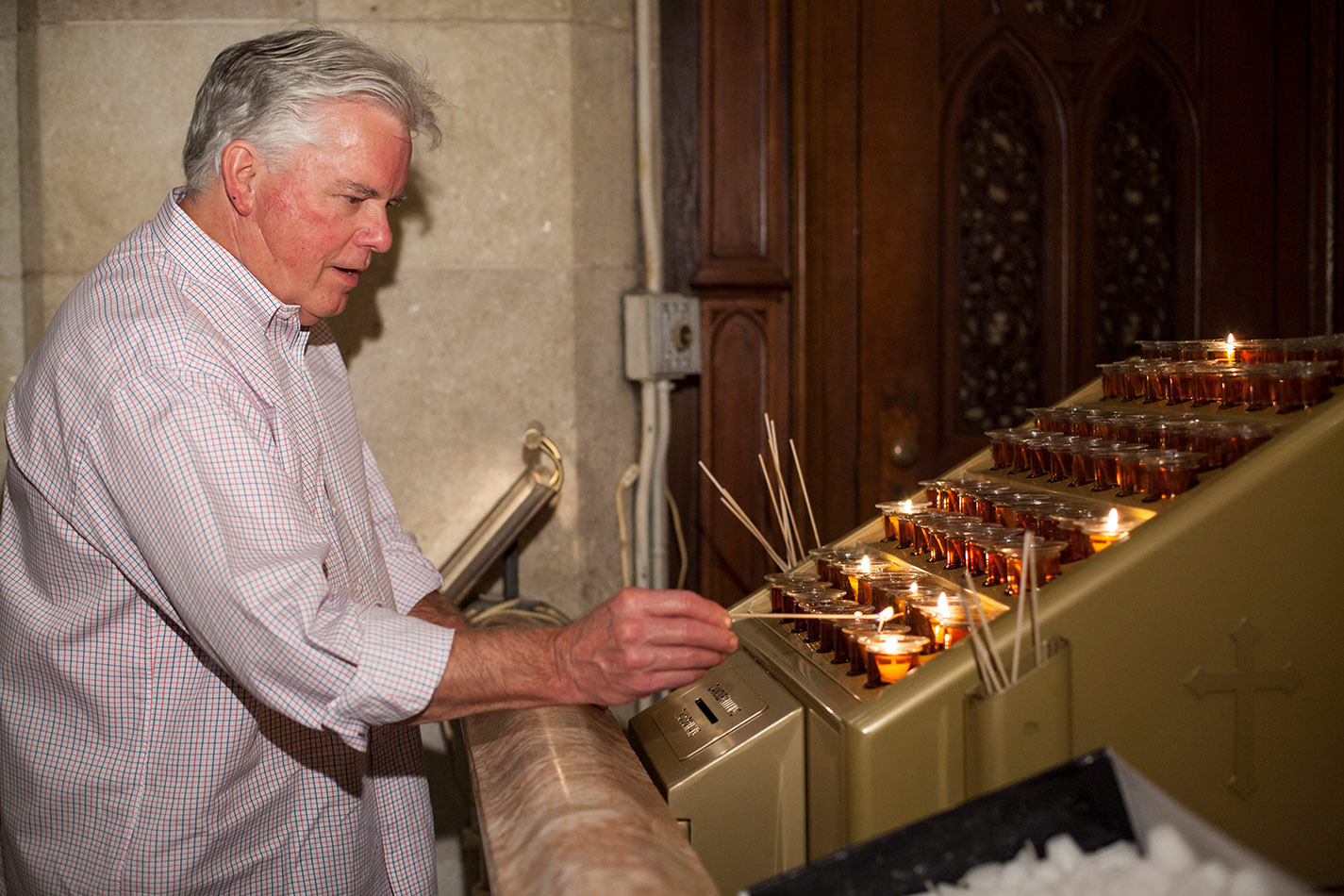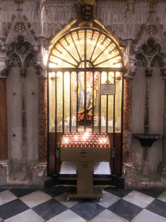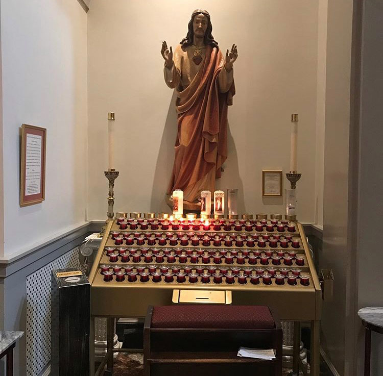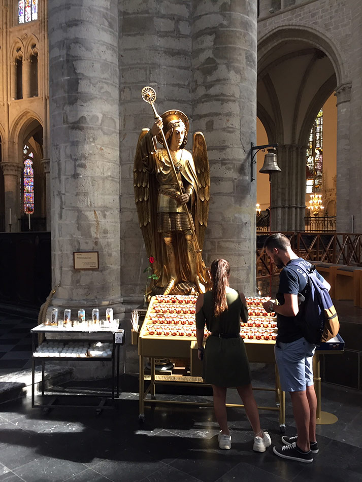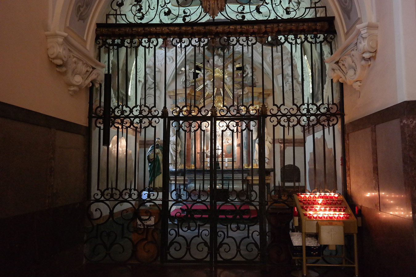 Svícny instalované ve svatyni Panny Marie, Královny Irska v Knocku
