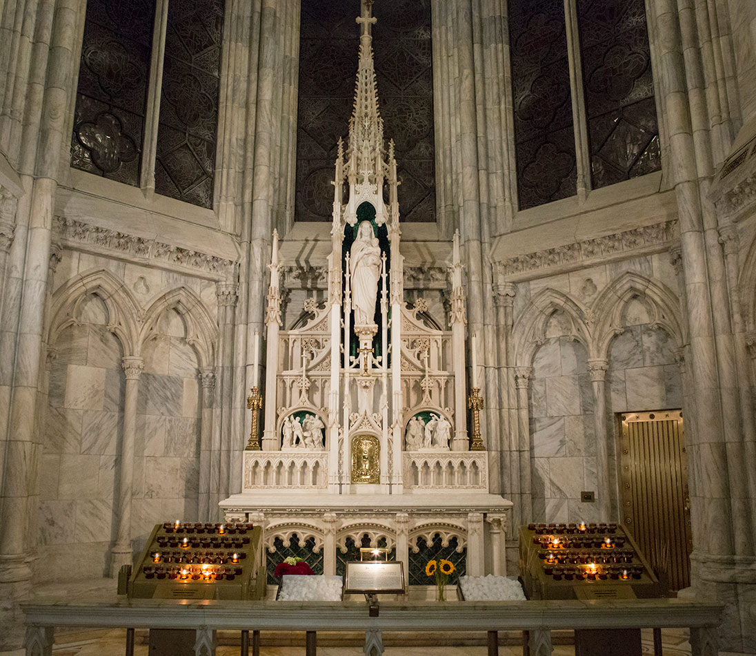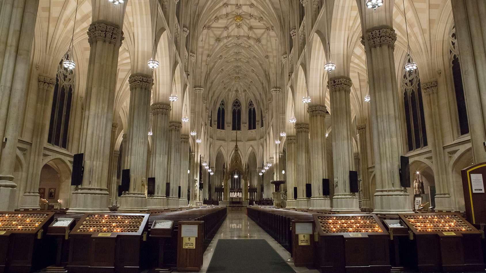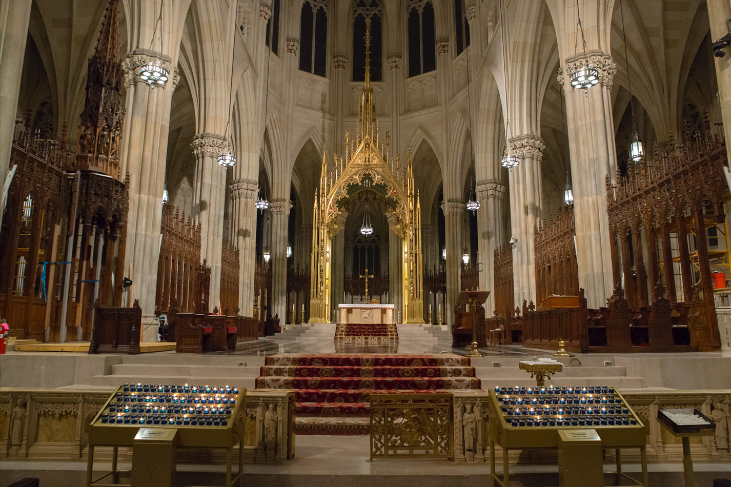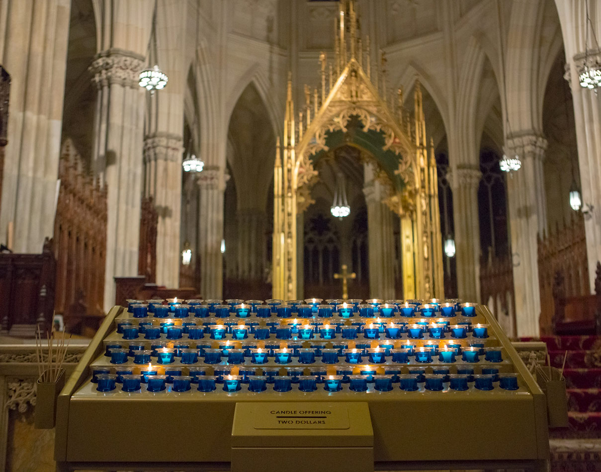 Svícny instalované v katedrále svatého Patrika v New Yorku v USA