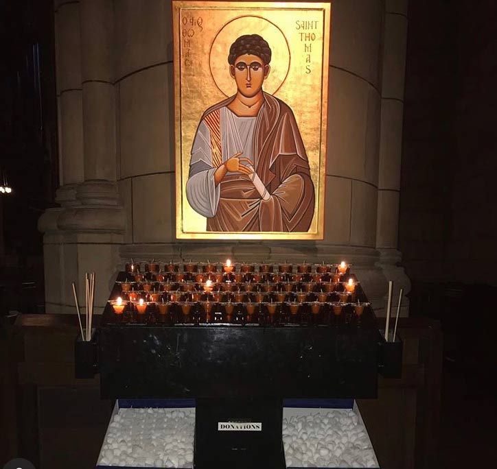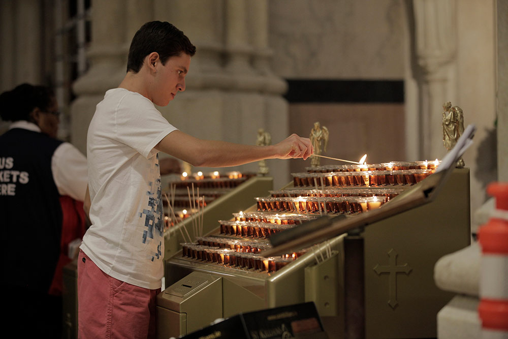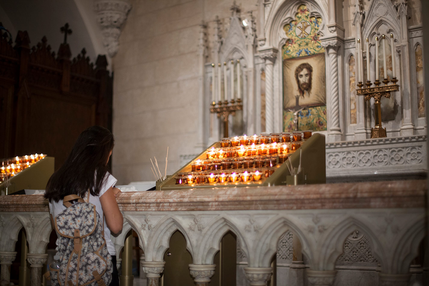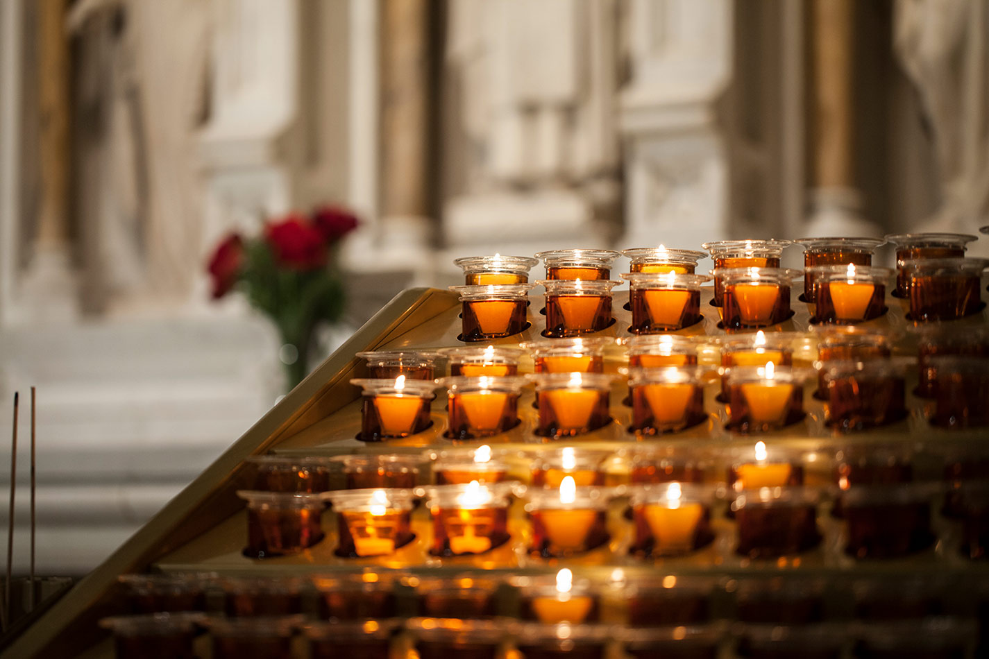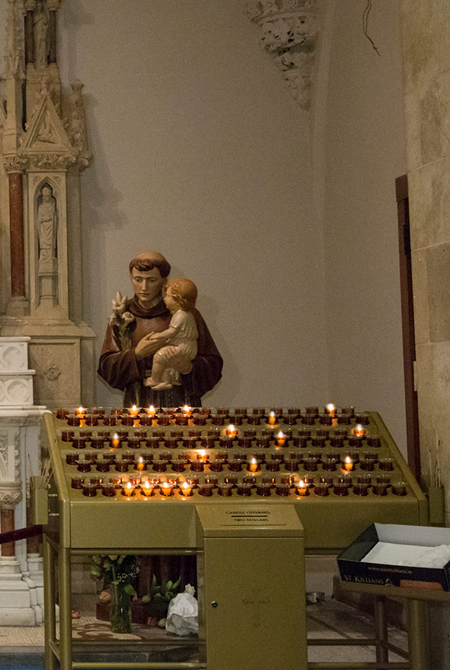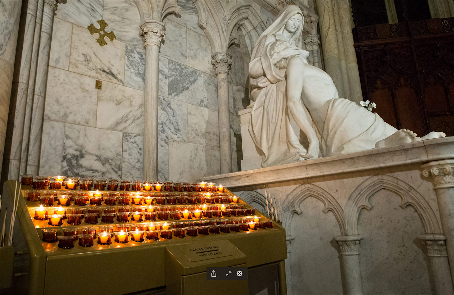 Svícny instalované v katedrále svatého Patrika v New Yorku v USA