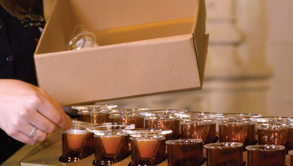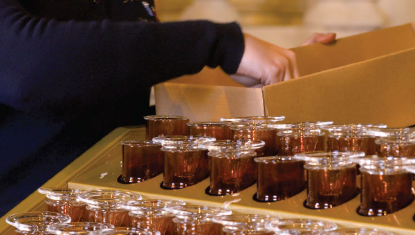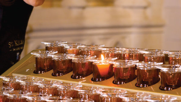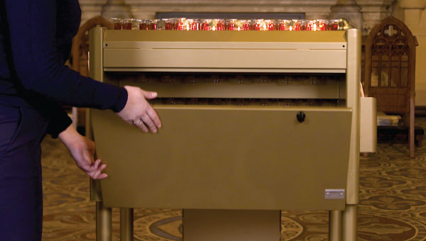 ČERVENÁ = sklo je znečištěné a je třeba jej vyměnit. Saint. Killians nabízí bezplatnou službu čištění skla v každém kostele. Sklo si můžete vyčistit i sami – odstraňte ze skla zbylý vosk, omyjte jej, osušte a poté jej vraťte zpět do svícnu.