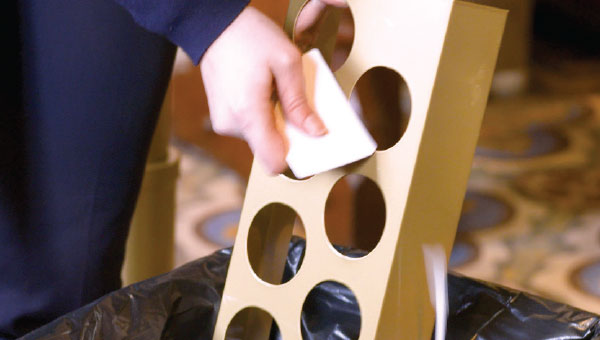 6. Pomocí plastové karty odstraňte zbývající parafín z přepažky a ostatních částí svícnu.
